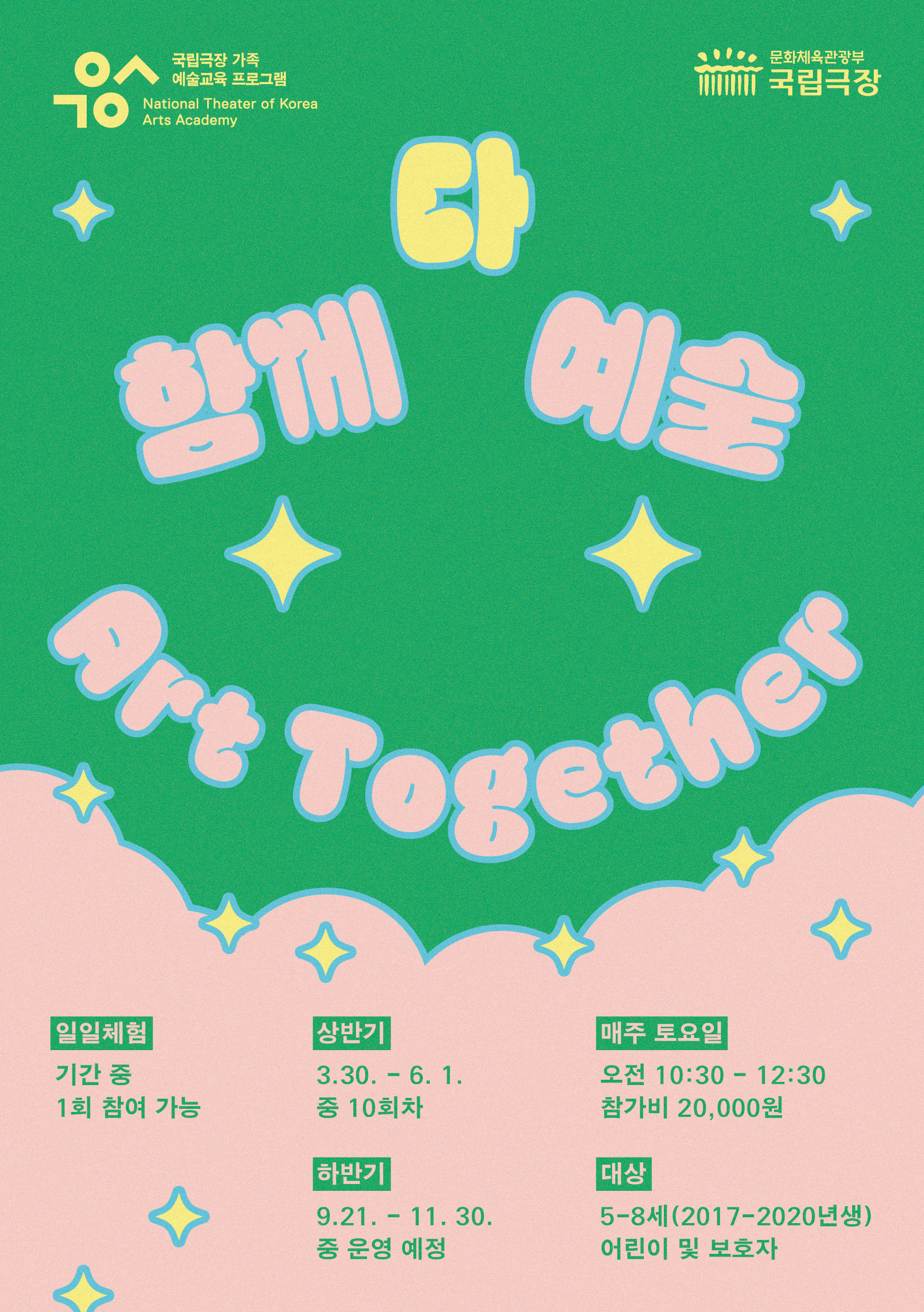 <다 함께예술>은 국립극장에서 어린이와 보호자를 위해 준비한 일일 체험 교육프로그램입니다.