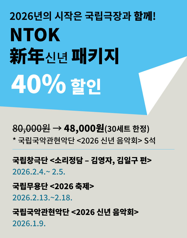 - 모든 패키지는 국립극장 엔톡(NTOK) 회원만 1인 2세트 구매 가능하며, 조기매진 될 수 있습니다.