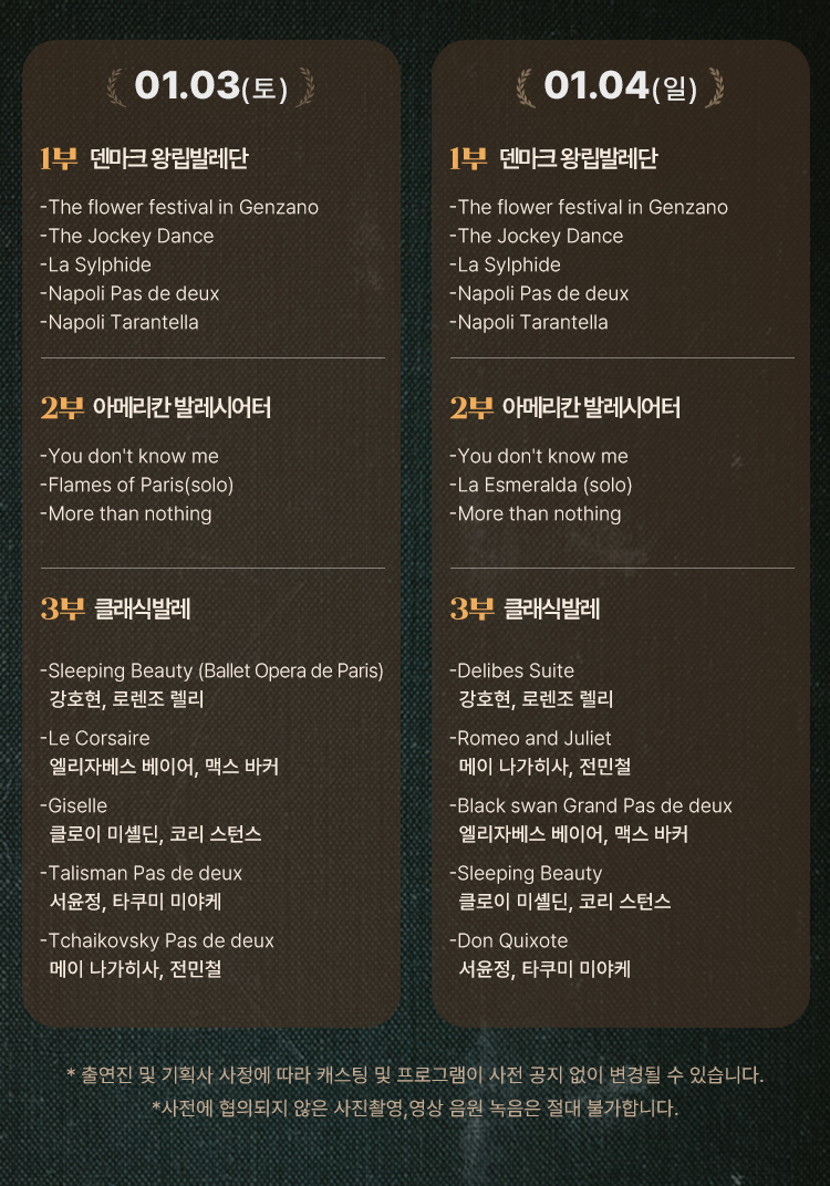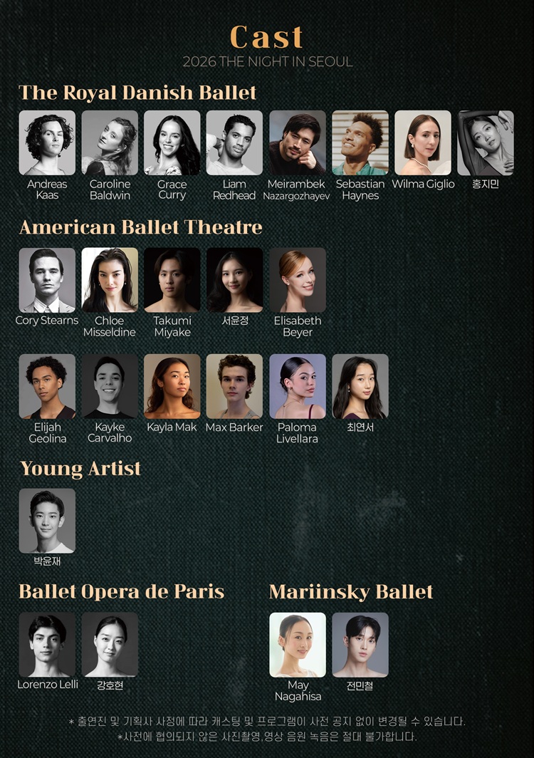 덴마크 왕립발레단, 프랑스 파리오페라 발레단, 러시아 마린스키발레단, 그리고 미국 아메리칸 발레 시어터와 ABT 스튜디오 컴퍼니가 한 무대에 오른다.