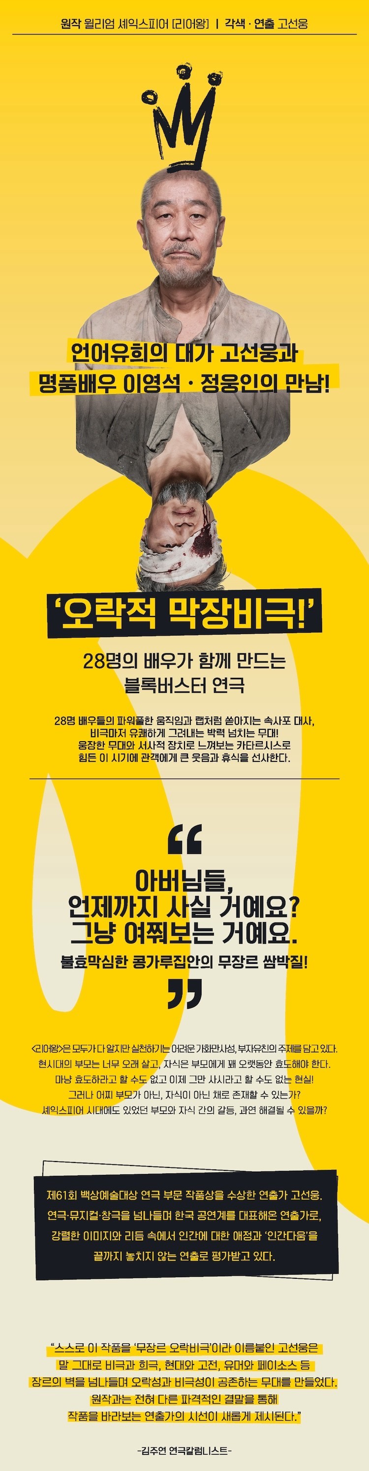 고선웅 특유의 맛깔난 언어유희로 과감하게 비틀고 재구성한 <리어왕외전>