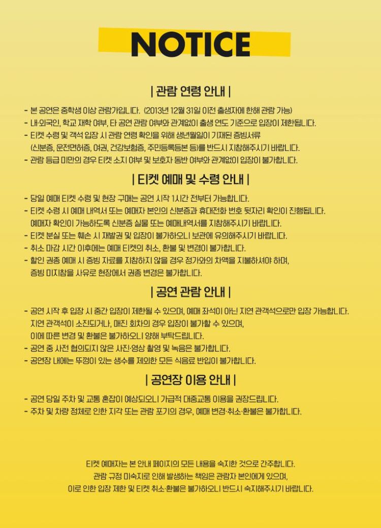 ※ 티켓 예매자는 본 안내 페이지의 모든 내용을 숙지한 것으로 간주합니다.