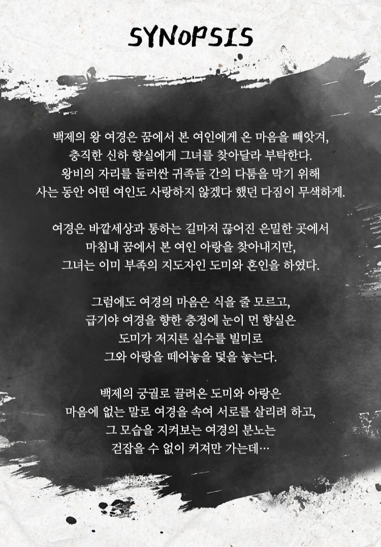 꿈속에서 아랑을 본 후 꺼지지 않는 욕망의 불길에 사로잡히는 백제의 왕.
