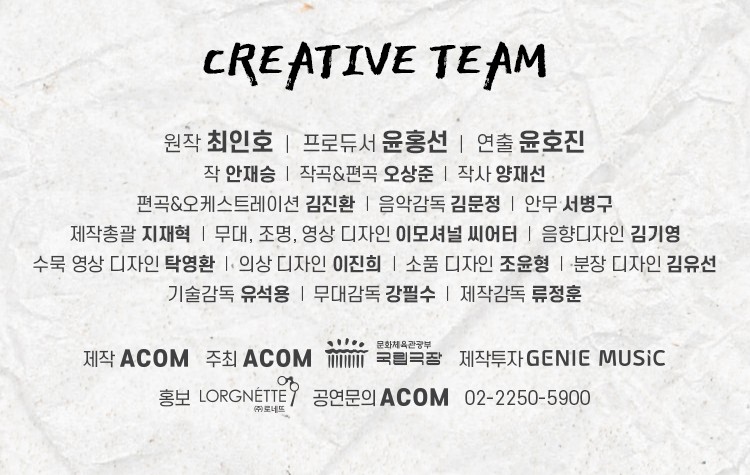 제작총괄 지재혁 | 무대, 조명, 영상 디자인 이모셔널 씨어터 | 음향 디자인 김기영