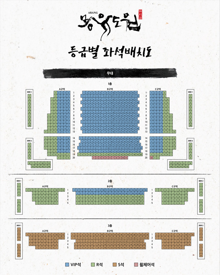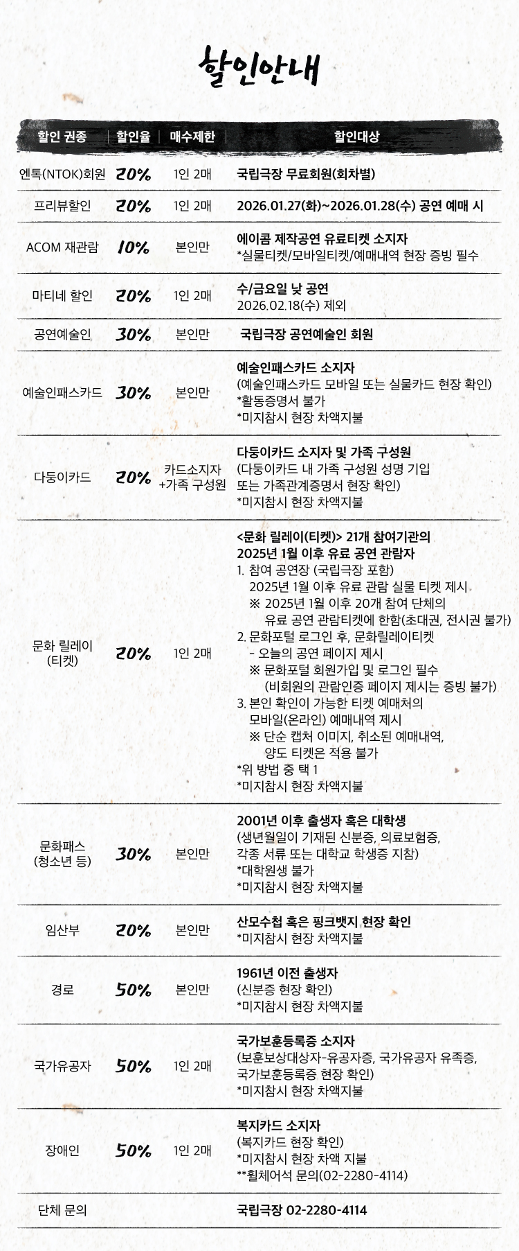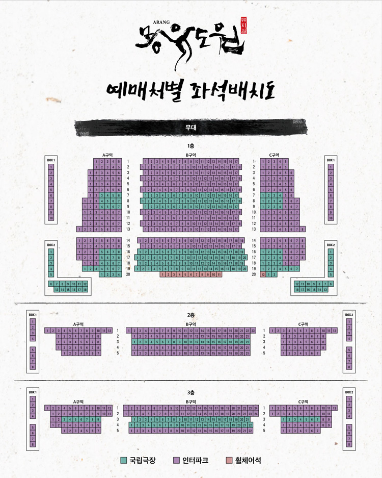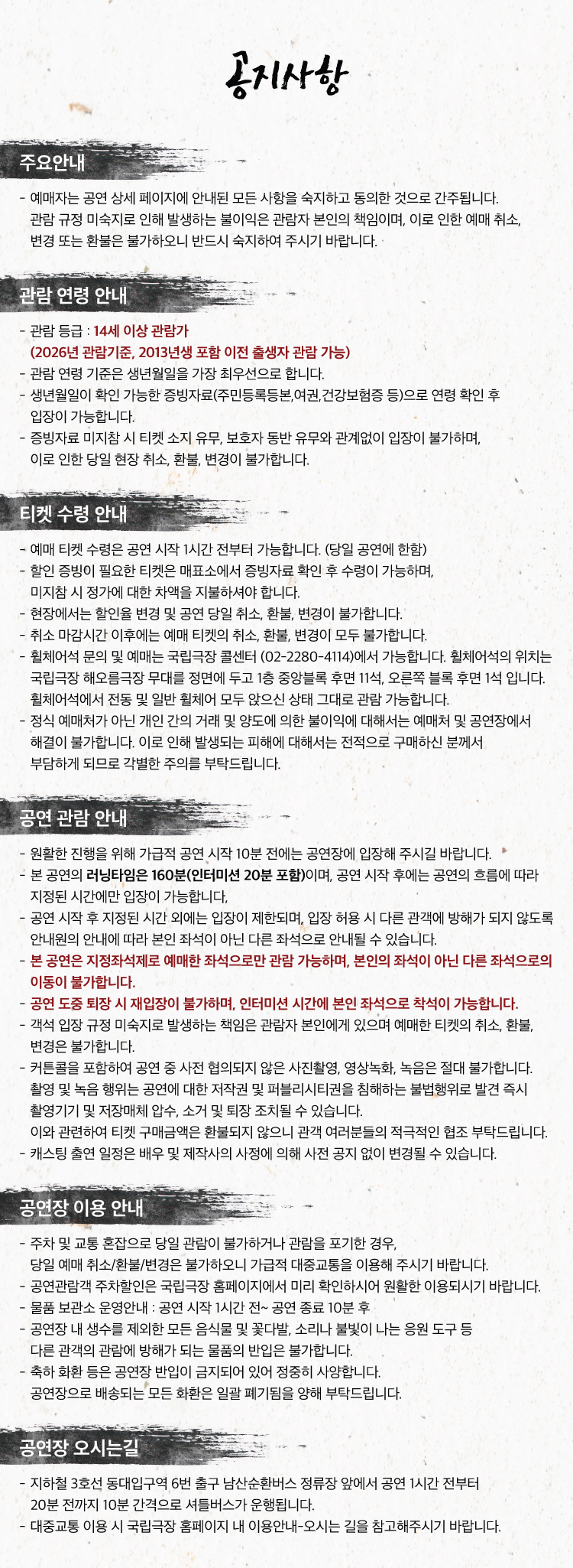 -휠체어석 문의 및 예매는 국립극장 콜센터 (02-2280-4114)에서 가능합니다.