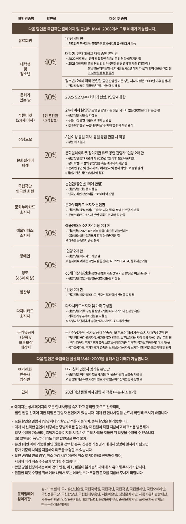 - 예매방법: 국립극장 콜센터 (02-2280-4114)