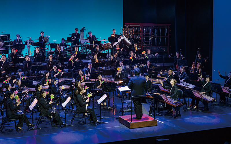 마음의 불꽃은 생생한 현장에서 가장 뜨겁게 타오른다. 그래서 국립국악관현악단은 2021년, 소년 소녀에게 성큼 다가가기로 했다. 올해로 5회째를 맞는 <소소 음악회>는 국립국악관현악단이 선보이는 청소년 맞춤형 콘서트로, 국악의 생활화와 세계화를 기치로 1995년에 창단된 국립국악관현악단이 그간 축적된 음악적 유연함과 동시대적 감각을 총동원해서 만든 웰메이드 국악 입문 공연이다. 코로나19 팬데믹 상황에 시작된 <소소 음악회>가 그럼에도 불구하고 첫 회 공연부터 객석 점유율 97.2%에 달하는 뜨거운 호응을 받은 것은 현장의 갈증과 필요를 읽어 낸 남다른 기획력과 고민이 느껴졌기 때문일 것이다. 교과서에 수록된 곡과 국악기를 설명하는 지식 전달 위주의 음악회로는 교과서 밖의 청소년을 국악의 세계로 안내하기 어렵다는 문제의식이 <소소 음악회>의 출발점이 되었다. 그렇다면 어떤 음악회여야 할까. 국립국악관현악단이 찾은 답은 교육의 목적이 아닌 ‘공연 그 자체로 즐거운 음악회’였다. 이 음식이 얼마나 영양가가 있는지 설명하고 건강을 위해 먹어야 한다고 주입하는 것이 아니라, 한입 먹어 보니 맛있어서 음식 이름을 기억해 두었다가 나중에 기회가 되면 또 먹게 되는 그런 방식. 목적 없는 즐거운 맛을 지향하는 것이 국악 입문 맛집 <소소 음악회>의 흥행 비결이 된 것이다.