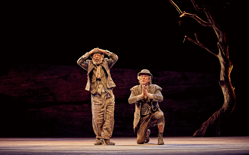 역동의 근현대를 아우르며 서민들에게 용기와 희망을 준 ‘선생님들’의 삶이 에스트라공과 블라디미르에 스며든다. 관객들은 구순이 다 되어서도 무대 위에서 복잡한 동선을 일상인 양 소화하며 현학적 대사를 그들만의 톤으로 주고받는 모습을 직접 보는 것만으로도 위안과 용기를 얻는다. 거대한 나무 한 그루와 보름달이 전부인 간결한 무대가 연륜과 통찰로 가득 채워지는 것을 실감한다. 선문답을 주고받으면서도 끝까지 함께하는 ‘관계의 체온’을 나누기 때문이다. 사뮈엘 베케트가 직접 보았다면 웃어야 할지 울어야 할지 난감했을 법한 한국적 재해석, 아니 ‘선생님들’의 통찰이다.