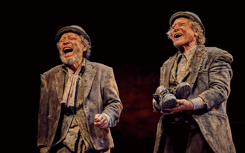 2023년 12월 개막한 첫 번째 시즌은 신구·박근형·박정자가 각기 에스트라공·블라디미르·럭키로 분했다. 연기 경력 60년 이상인 세 배우의 평균연령은 80대 중반. 국내외 전례 없는 초고령 캐스팅이다. 500석 넘는 국립극장 달오름극장에서 인터미션 포함 러닝타임 150분으로 개막한 첫 주, 공연을 관람하며 손에 땀을 쥐었다. 임영웅 연출의 산울림 소극장 버전과 달리 달오름극장 버전은 동선이 훨씬 길다. 소극장과 중대극장의 공간 차이가 커서 ‘선생님들’의 체력 소모가 많아 보였다. 원 캐스트로 예정된 두 달 장기 공연을 무사히 잘 해내길 기도했다. 80대 중반에 들어서면 보통 사람들은 가만히 앉거나 서 있기도 힘들기 때문이다. 엄청난 분량의 대사와 원작자 베케트가 지시한 상징적 액팅, 동선을 소화하고 더불어 그들만의 해석으로 공간을 가득 채우는 ‘선생님들’의 <고도를 기다리며>는 기적이었다. 어렵게 예약한 시즌1의 막공. 더 깊어진 해석과 더 강력해진 에너지에 혀를 내둘렀다. ‘선생님들’은 일반인이 아님을 새삼 깨달았다. 두 번째 시즌인 같은 해 5월. 전국 투어 이후 다시 서울에서 개막한 <고도를 기다리며>는 박정자 럭키 대신 조달환 럭키가 투입되었다. 저작권자인 베케트재단에서 여성 배우의 출연에 제동을 걸었기 때문이다. 원작자인 사뮈엘 베케트는 생전에 <고도를 기다리며>에 대한 구체적이고 자세한 연출 가이드라인을 권고한 바 있다. 바로 남성 배우들만으로 구성돼야 한다는 원칙이다. 이에 대한 논쟁은 매우 복잡하니 이 지면에서는 다루지 않기로 한다. 여하튼 그로 인해 젠더와 해석의 경계를 넘나든 박정자 럭키와 김리안 소년의 오묘함은 다시 볼 수 없게 되었다. 신구 에스트라공과 박근형 블라디미르, 김학철 포조에 이어 조달환 럭키와 이시목 소년이 새로 합류했다. 시즌2 역시 폭발적 인기였다. 그리고 올해 5월 세 번째 시즌에 이르게 되었다.
