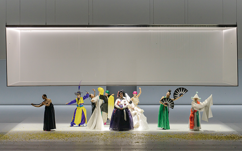 연출가 양정웅이 “<미인>을 위해 한국 예술계의 ‘어벤저스’ 창작진을 한자리에 모았다”고 했을 때, 먼저 눈길이 쏠린 쪽은 의상과 오브제 디자인을 맡은 한국의 1세대 스타일리스트 서영희와 무대 디자인을 맡은 아트디렉터 신호승이었다. 대극장 무대에서 의상과 무대 디자인의 중요성은 기록적 성공을 거둔 <묵향> 등 국립무용단의 전작들이 이미 증명했듯 아무리 강조해도 지나치지 않다.