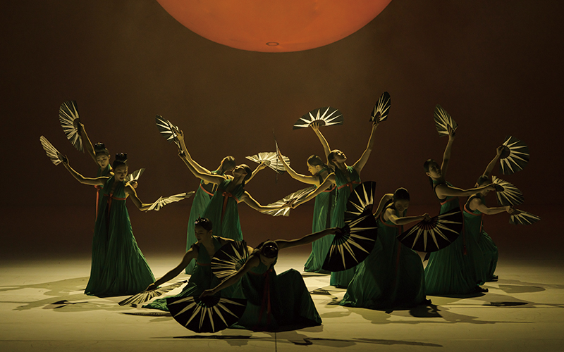 신윤복의 풍속화 ‘쌍검대무’와 『무예도보통지』에 나온 쌍검술, 짤랑짤랑 화려한 소리를 내는 단검춤을 혼합한 칼춤은 LED 조명을 활용한 빛나는 막대기를 든 흑자 무용수들이 늘어선 배경, 흰빛을 내는 애드벌룬을 마치 금환일식의 해처럼 검은 원으로 가린 무대장치와 어우러져 판타지의 분위기로 나아갔다.