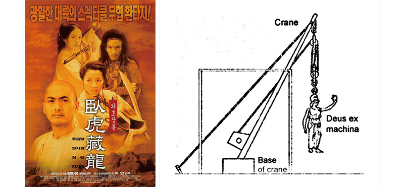 고대 그리스처럼 고대 중국에서도 와이어액션은 그 기원을 기원전 300년경으로 찾을 수 있다. 기예가 뛰어난 배우는 대나무 대공에 연결된 와이어 위에서 아슬아슬하게 신과 신령의 움직임을 모사했고, 관객들은 그 스펙터클을 보며 입을 다물지 못했던 것이다. 뉴 밀레니엄에 개봉해 서양 관객과 미국 아카데미까지 감동시킨 <와호장룡>의 오리엔털 와이어액션은 1970~80년대 홍콩 무협영화보다 훨씬 더 심원한 기원을 갖고 있었던 셈이다.